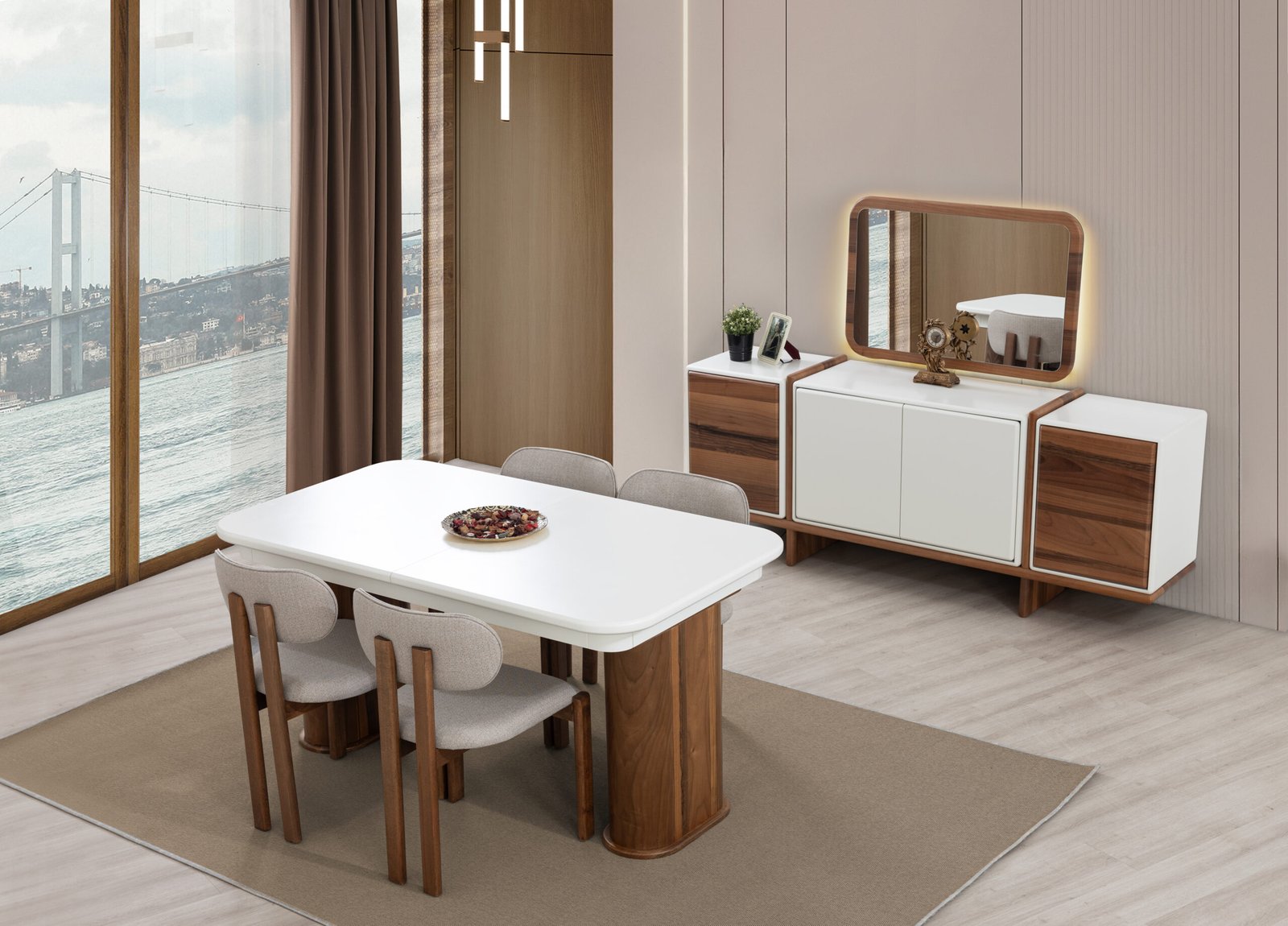 | TAKIM İÇERİĞİ | Bir konsol ve aynası, bir masa ve dört sandalyeden oluşmaktadır |