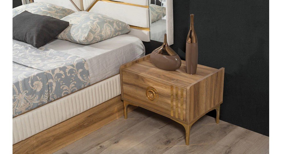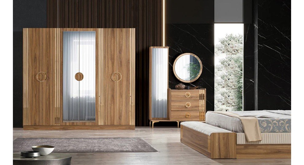 | TAKIM İÇERİĞİ | Bir gardırop, bir şifonyer ve puf, bir bazalı karyola, bir başlık, bir bench ve iki komodin den oluşmaktadır |