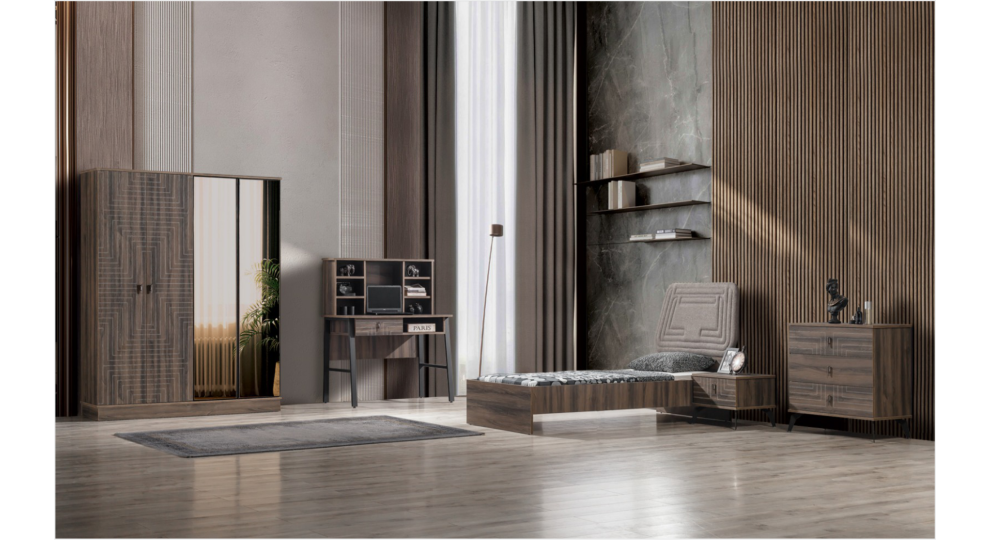 | TAKIM İÇERİĞİ | 1 Adet başlık ve karyola / 1 Adet gardolap/ 1 Adet şifonyer/ 1 Adet komodin/1 Adet çalışma masası |
