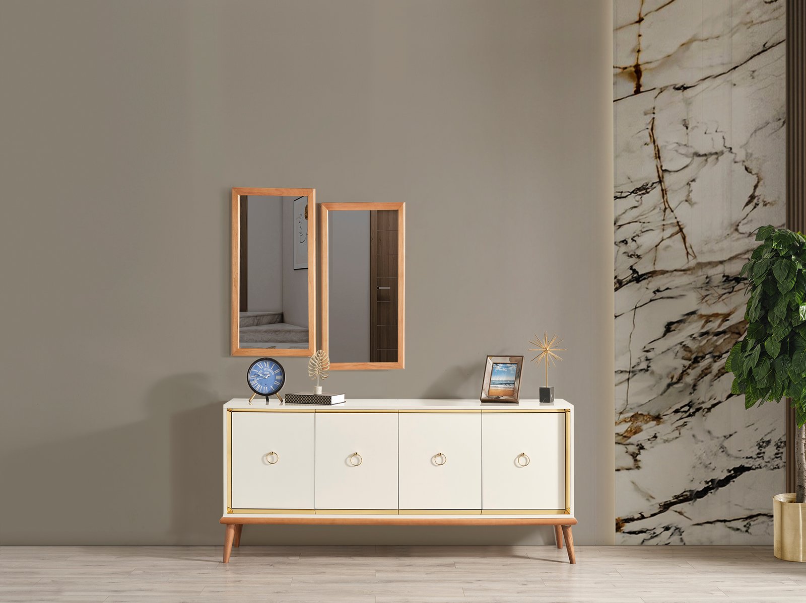 TAKIM İÇERİĞİ Bir konsol ve aynası, bir masa ve dört sandalyeden oluşmaktadır