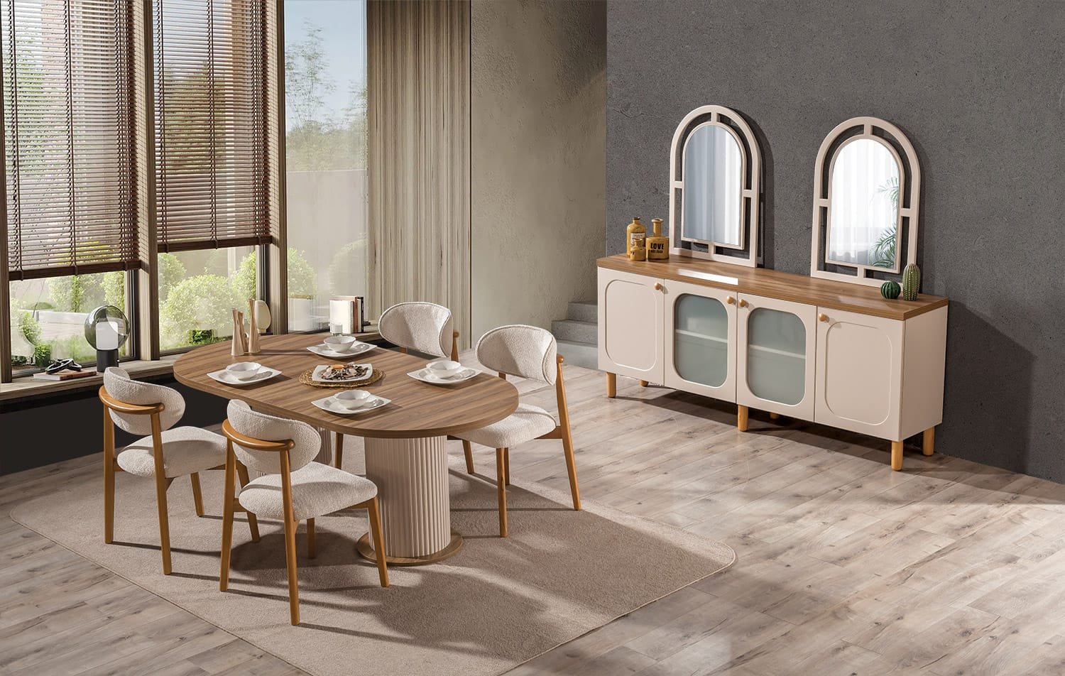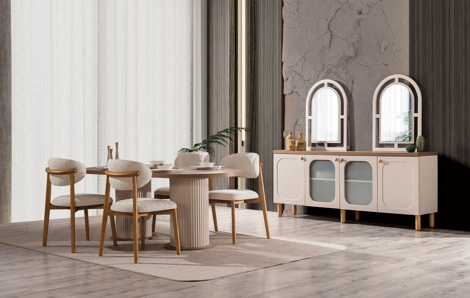| TAKIM İÇERİĞİ | Bir konsol ve aynası, bir masa ve dört sandalyeden oluşmaktadır |