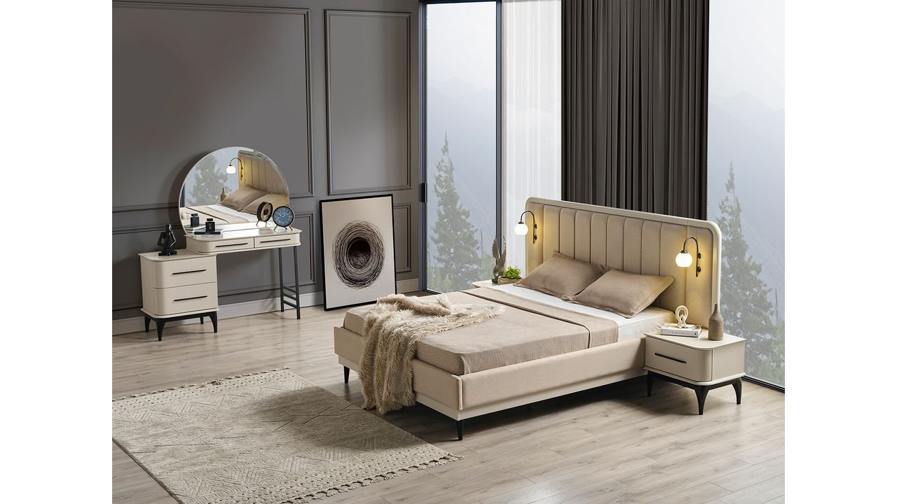 | TAKIM İÇERİĞİ | Bir gardırop, bir şifonyer, bir bazalı karyola, bir başlık,puf ve iki komodin den oluşmaktadır |