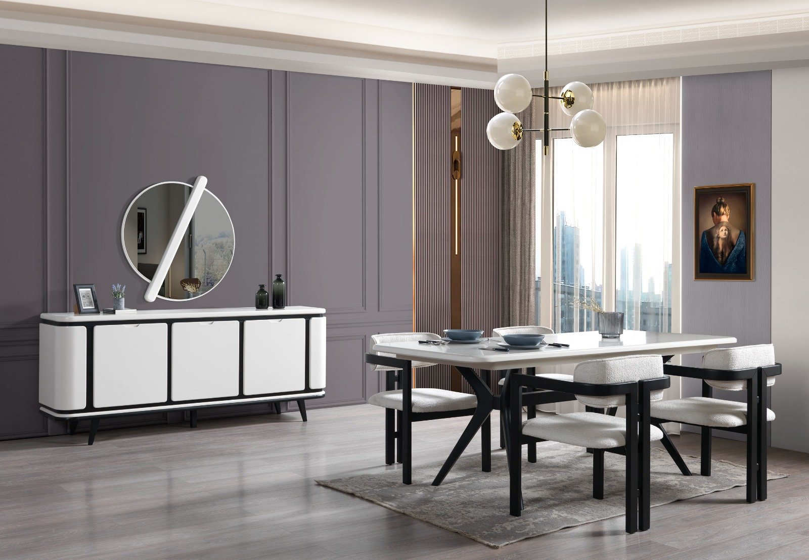 TAKIM İÇERİĞİ Bir konsol ve aynası, bir masa ve dört sandalyeden oluşmaktadır