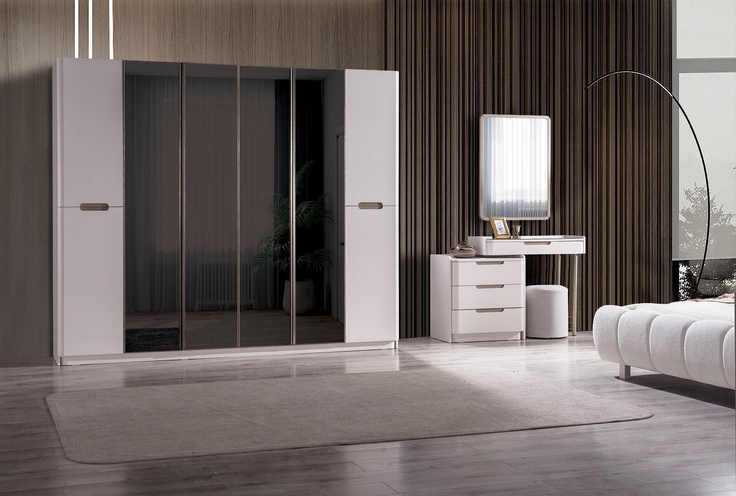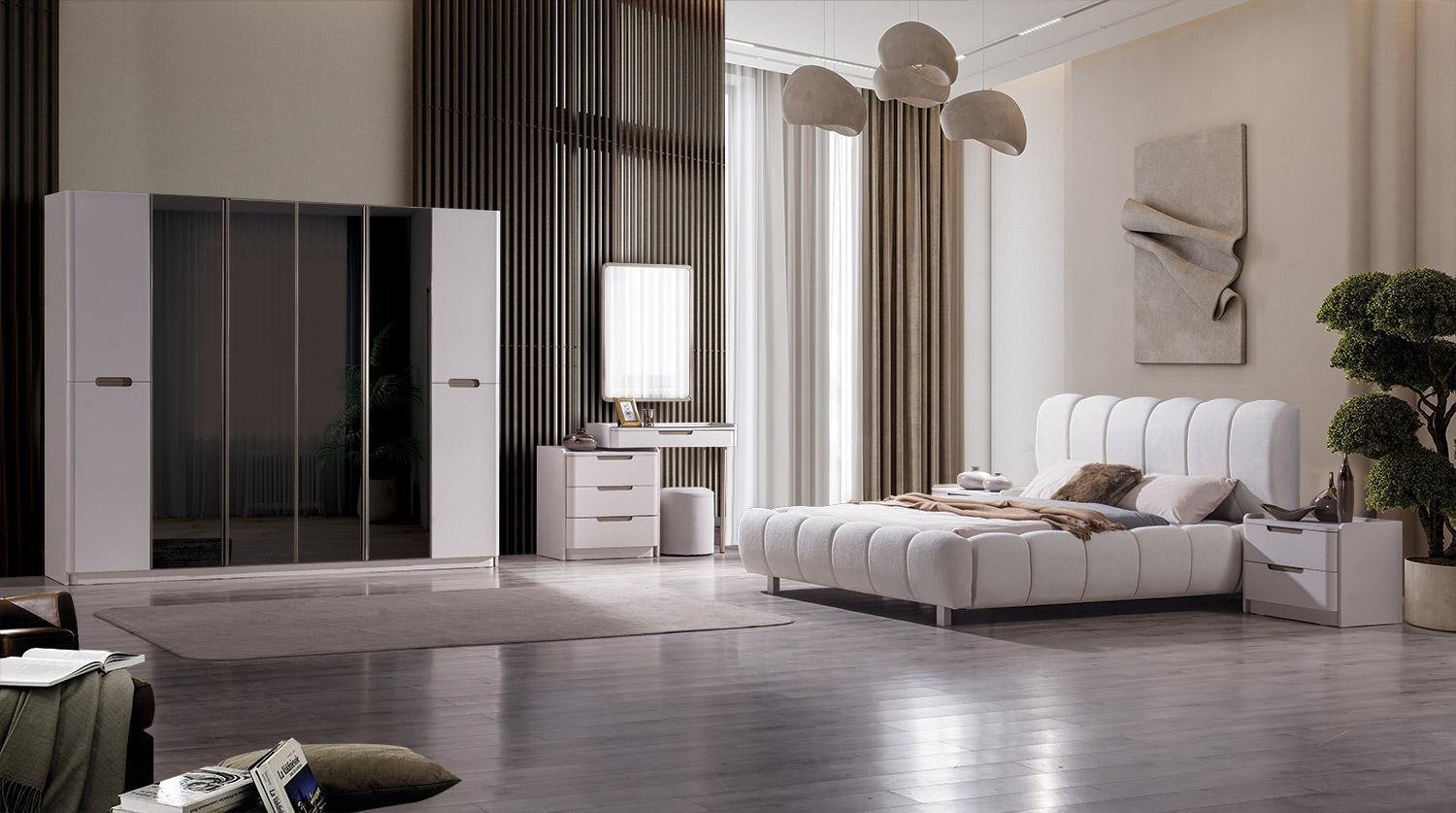 | TAKIM İÇERİĞİ | Bir gardırop, bir şifonyer, bir bazalı karyola, bir başlık ve iki komodin den oluşmaktadır |
