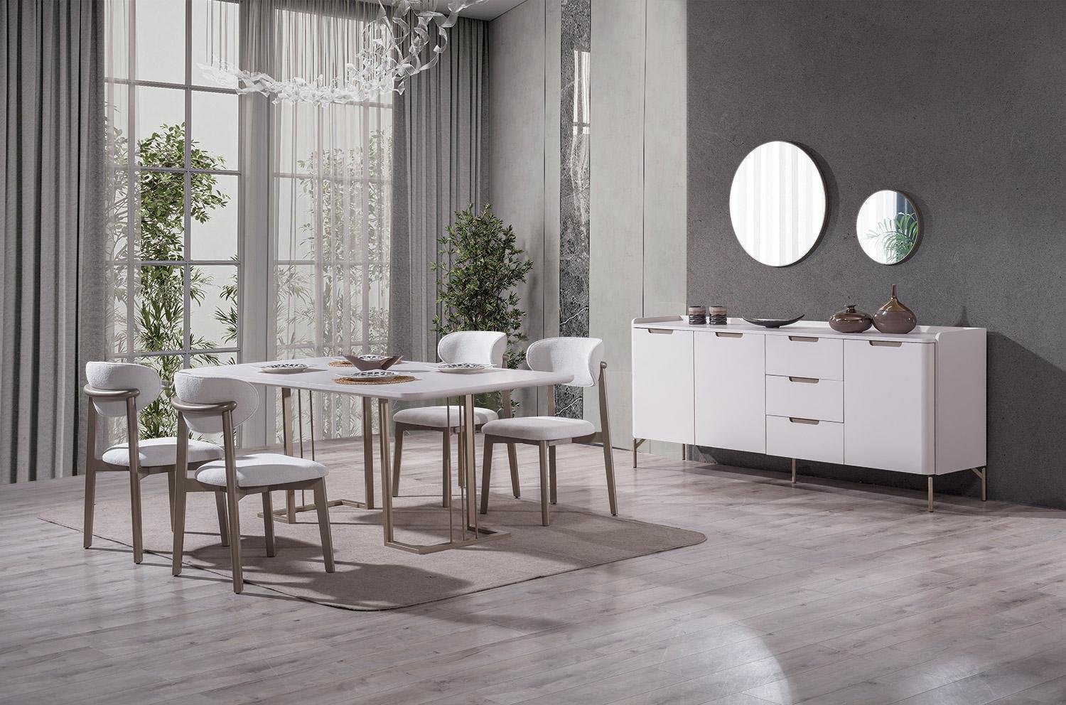 | TAKIM İÇERİĞİ | Bir konsol ve aynası, bir masa ve dört sandalyeden oluşmaktadır. Tv Ünitesi Opsiyoneldir. |