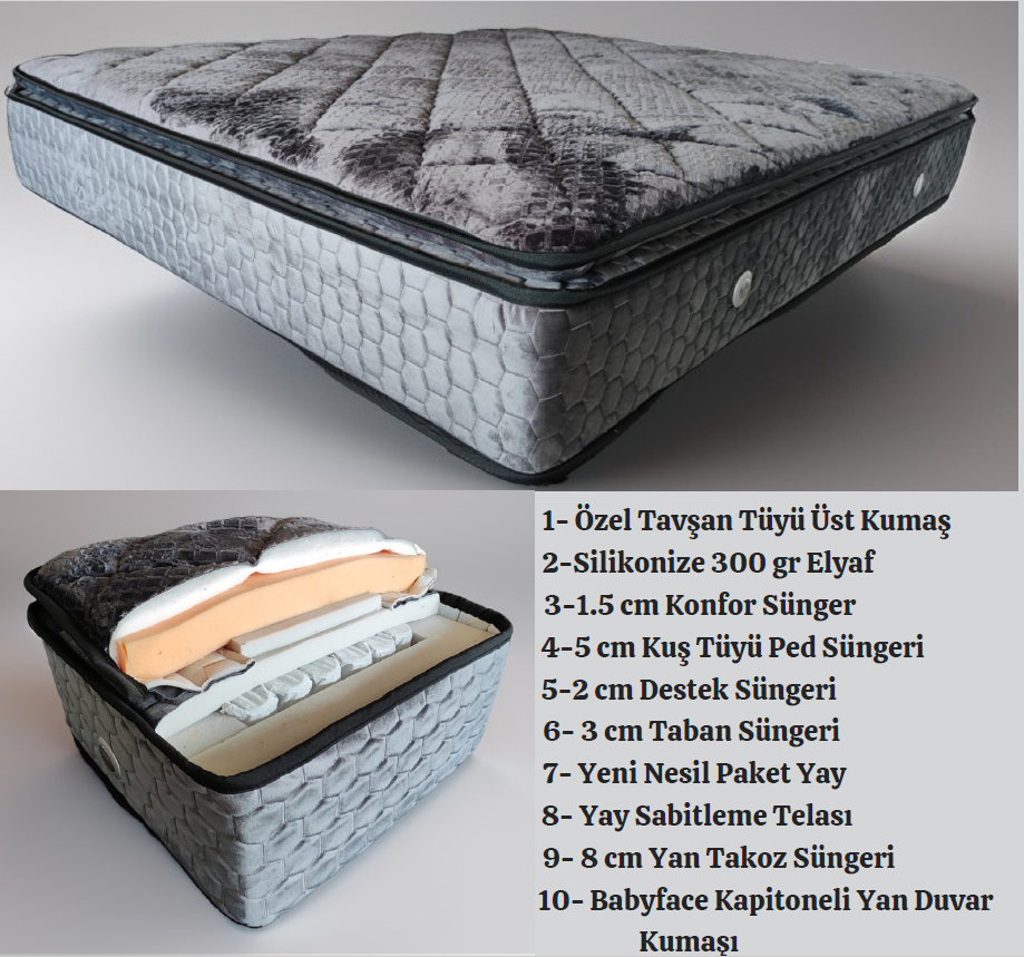 Vücut ısısınıa uyumlu terlemeyi engelleyen Viscolar sayesinde vücudun rahat nefes almasını sağlar ideal bir uyku için tasarlanmıştır.Paket yaylı yataklar son yıllarda popülerliği artan bir yatak türüdür. Birbirinn bağımsız torbalara yerleştirilen yaylardan üretilmektedirler. Üretilirken sertlik derecesine bağlı olarak farklı çapta tellerin tek tek kaplanması ve paketlenmesi ile oluşturulurlar. Yatak gövdesi üzerine beş farklı noktaya farklı çaptaki ve sertlikteki yaylar yerleştirilir. Bu yaylar ayrı ayrı kaplanıp paketlendiği için birbirinden bağımsız hareket ederler. Üzerindeki basınca göre farklı tepki verirler. Bu sayede vücudun ihtiyacı olan desteği farklı basınç noktalarına aynı anda verebilmektedirler. Boyun, bel, sırt veya basen gibi bölgelere destek sağlarlar. Standart yaylı yataklarda vücut ağırlığı tek bir bölgeye toplanır. Bu da uyandığınızda rahatsız hissetmenize veya gün içerisinde ağrı hissetmenize neden olabilir. Paket yaylı yataklarda dolgu olarak köpük malzeme kullanıldığından, oldukça rahatlardır. Hangi pozisyonda uyursanız uyuyun yeterli desteği almanızı sağlayarak iyi bir uyku deneyimi yaşamanıza yardımcı olurlar