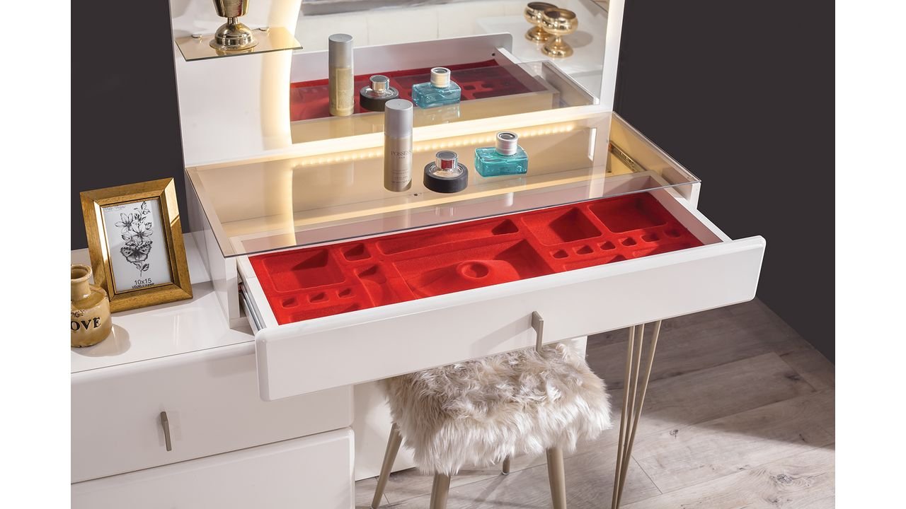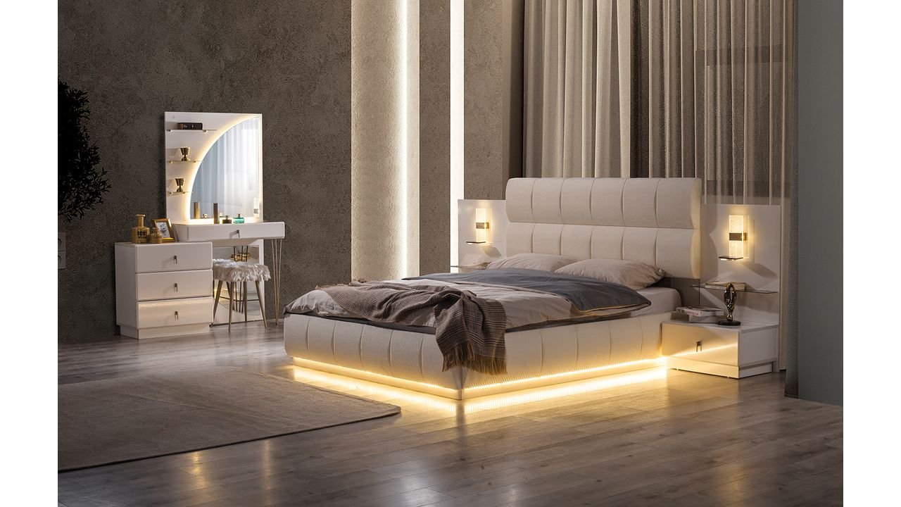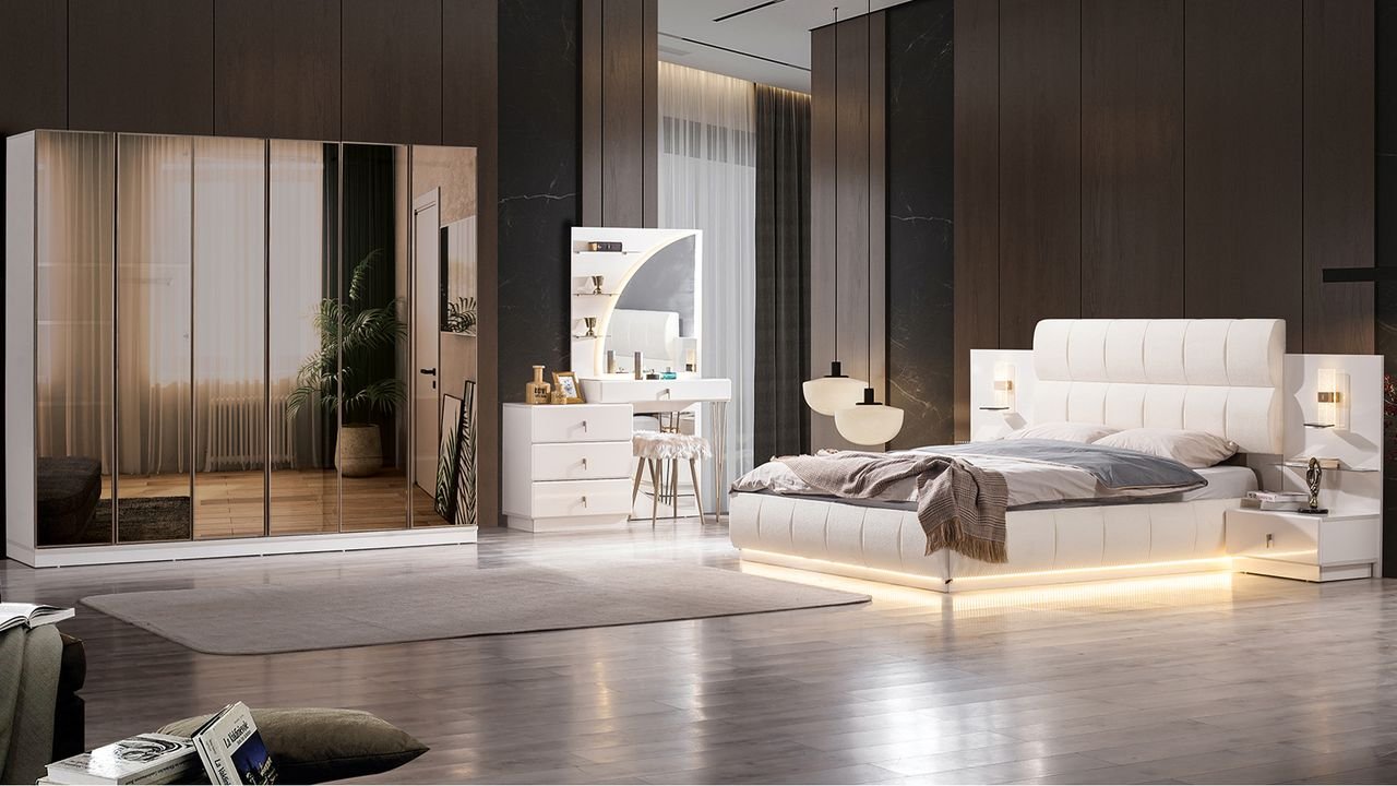 | TAKIM İÇERİĞİ | Bir gardırop, bir şifonyer, bir bazalı karyola, bir başlık,puf ve iki komodin den oluşmaktadır |