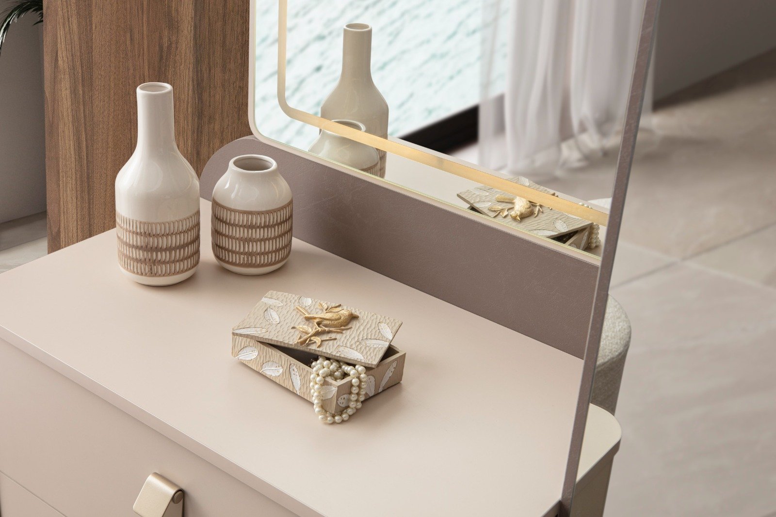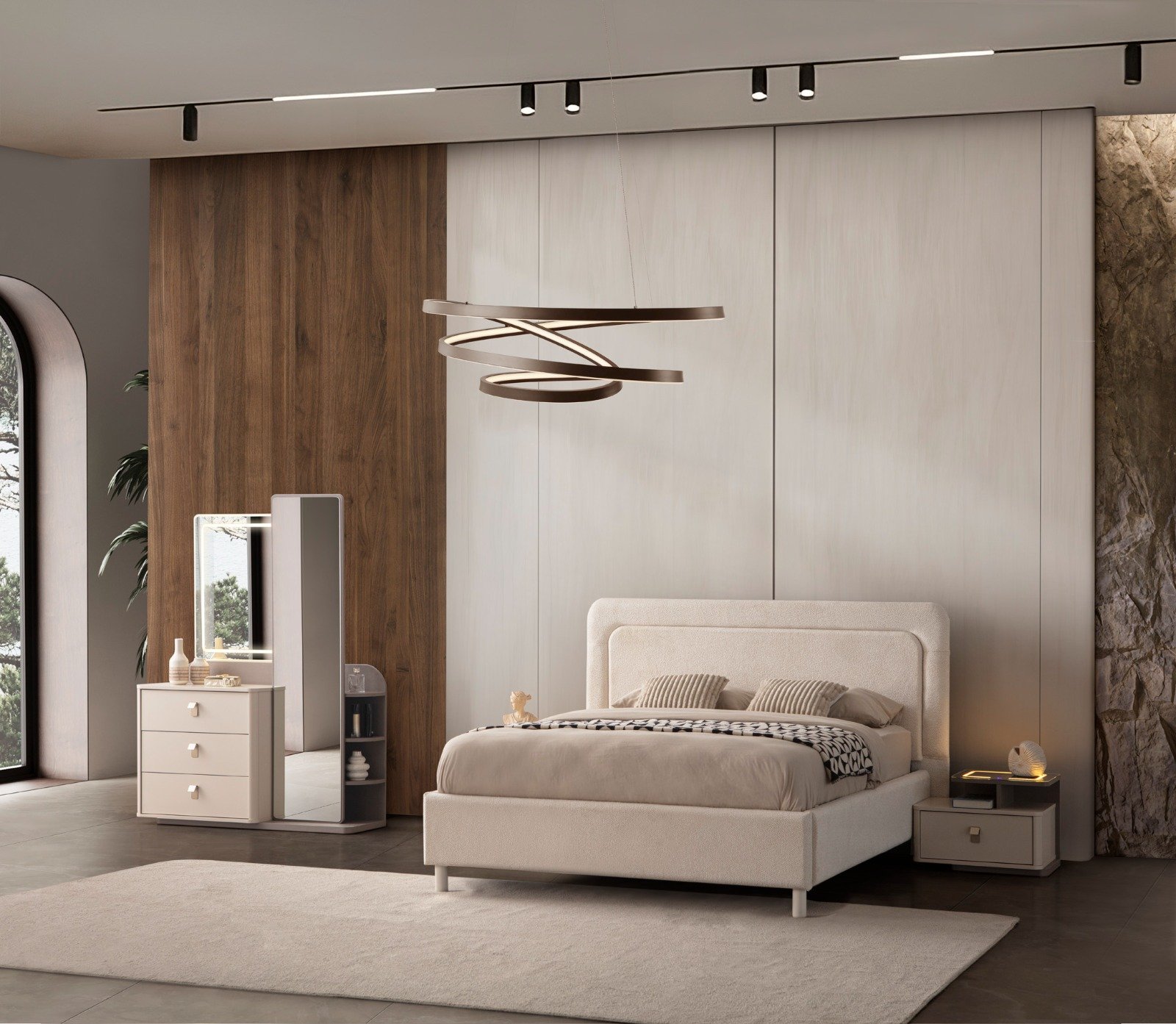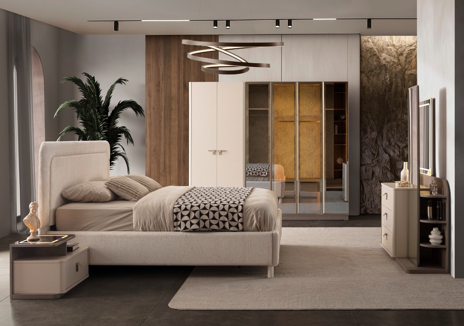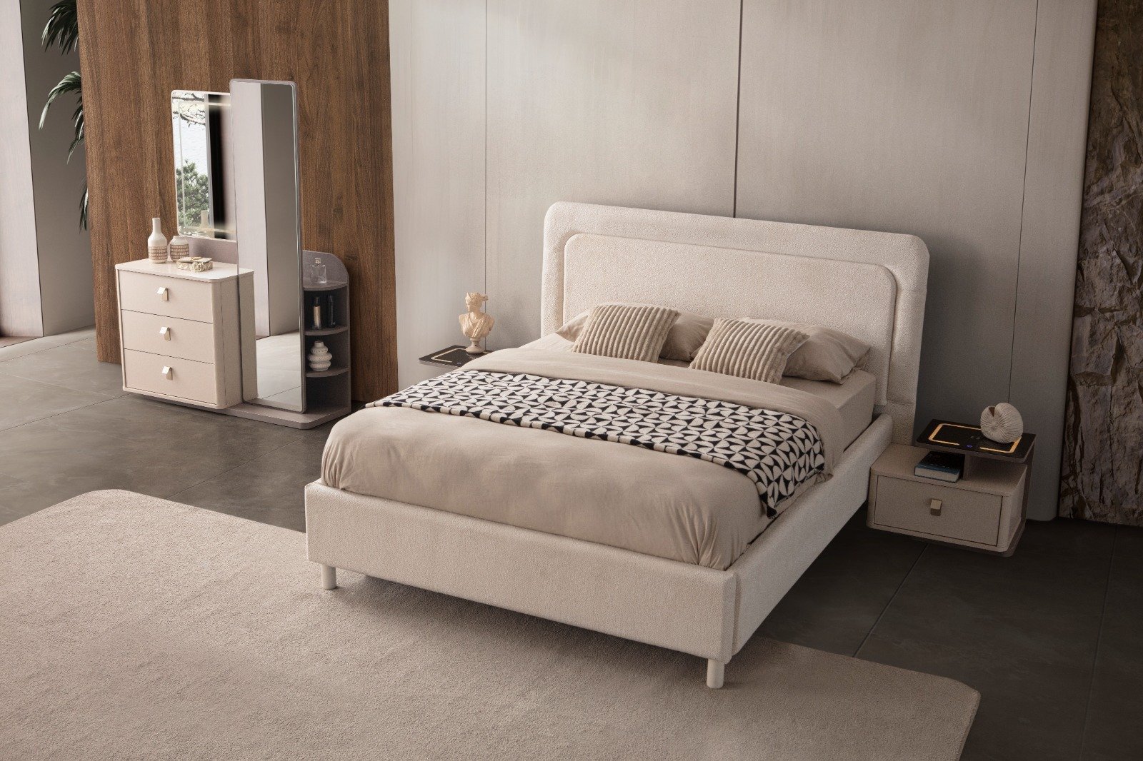 | TAKIM İÇERİĞİ | Bir gardırop, bir şifonyer, bir bazalı karyola, bir başlık,puf ve iki komodin den oluşmaktadır |