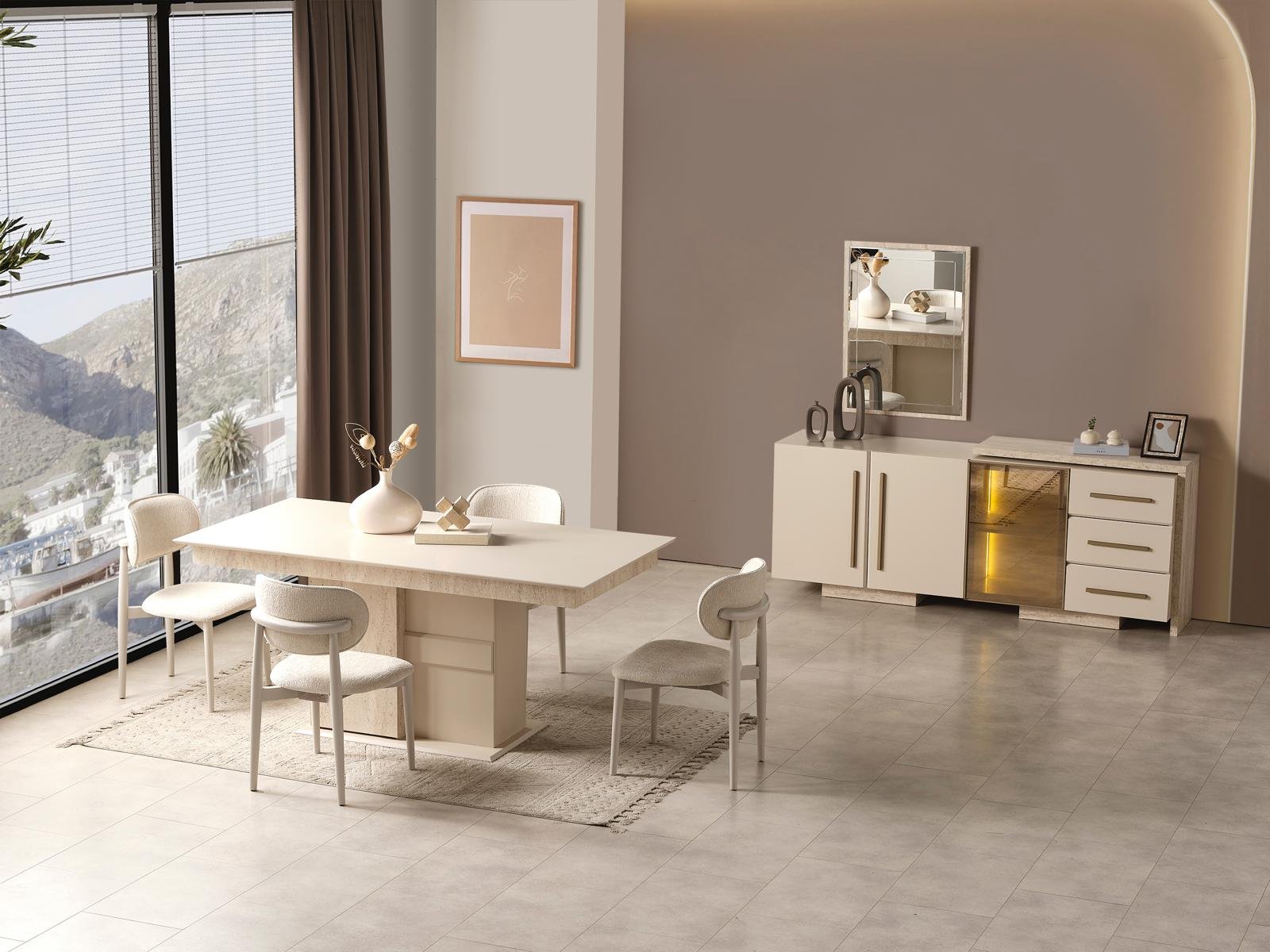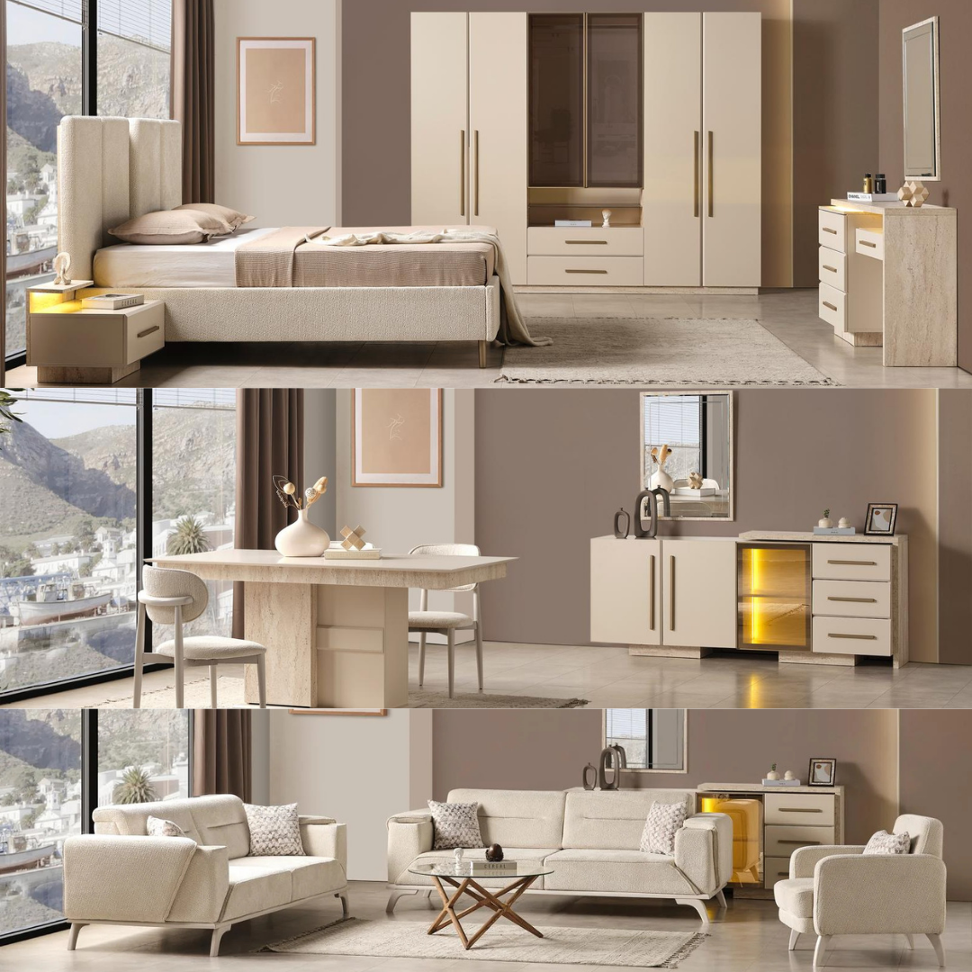 | TAKIM İÇERİĞİ | Bir gardırop, bir şifonyer, bir bazalı karyola, bir başlık ve iki komodin den oluşmaktadır. |