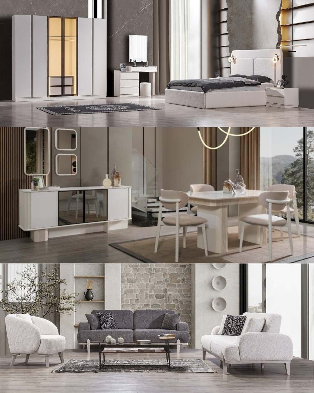| TAKIM İÇERİĞİ | Bir gardırop, bir şifonyer, bir bazalı karyola, bir başlık, bir bench ve iki komodin den oluşmaktadır |
