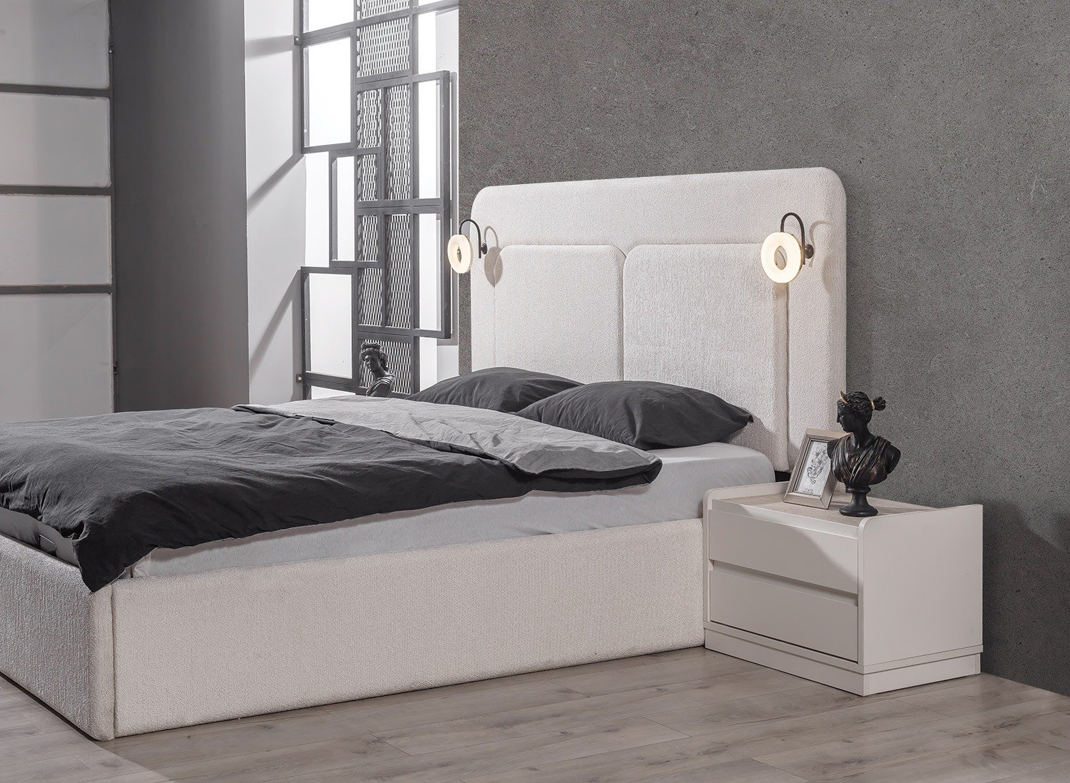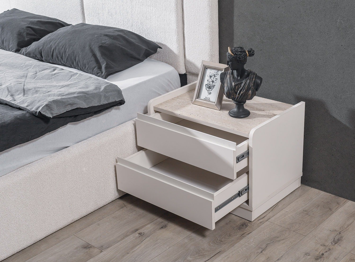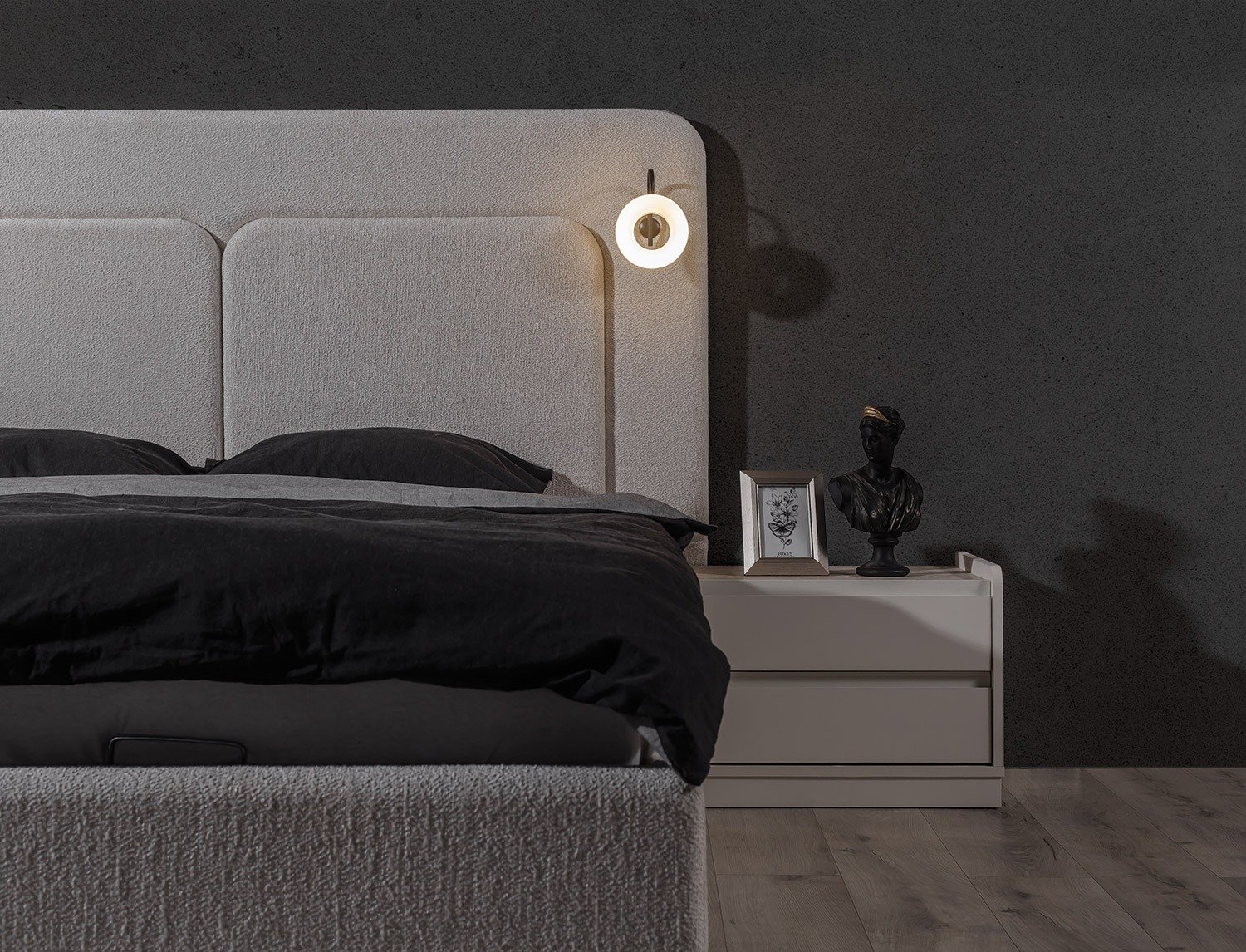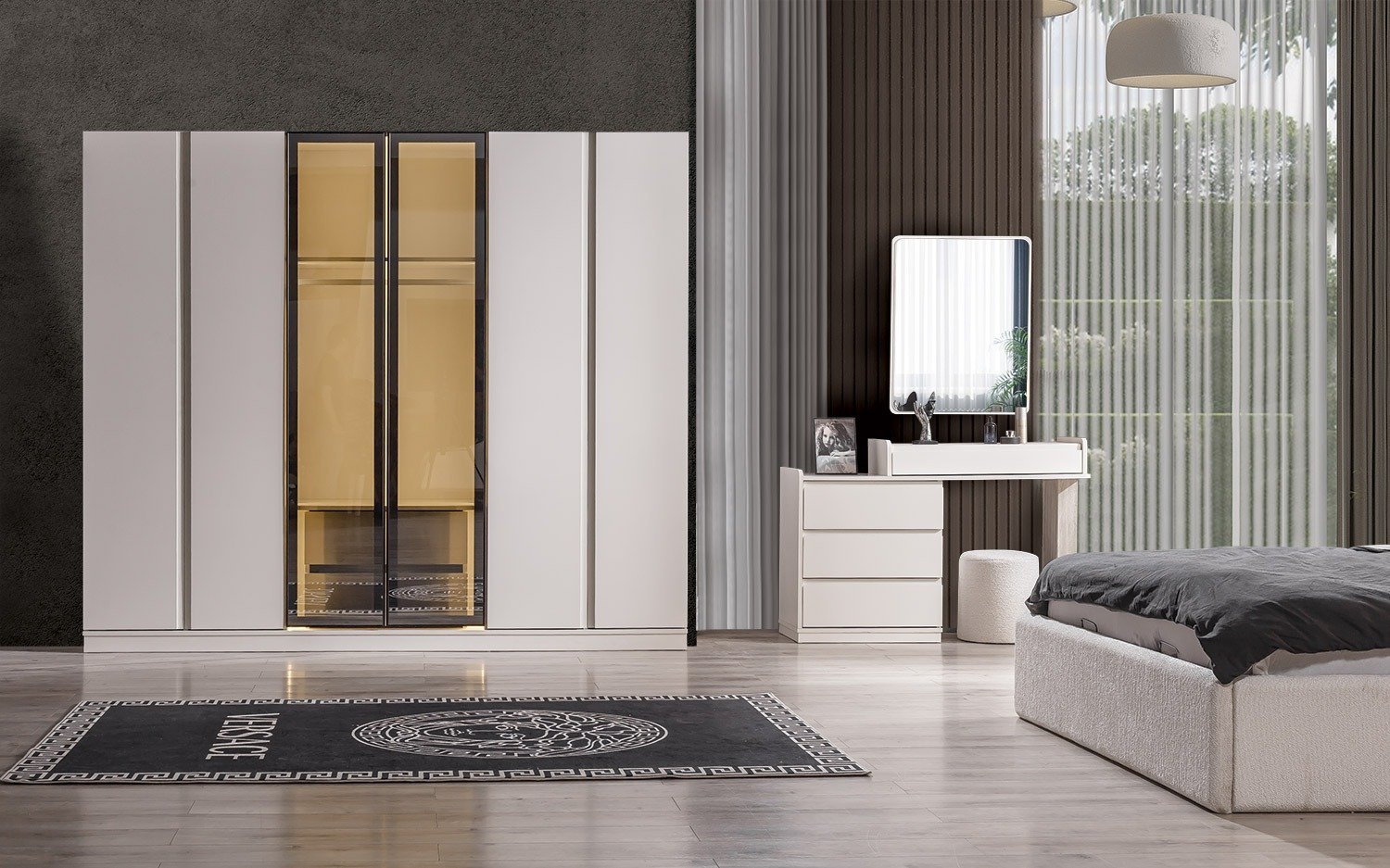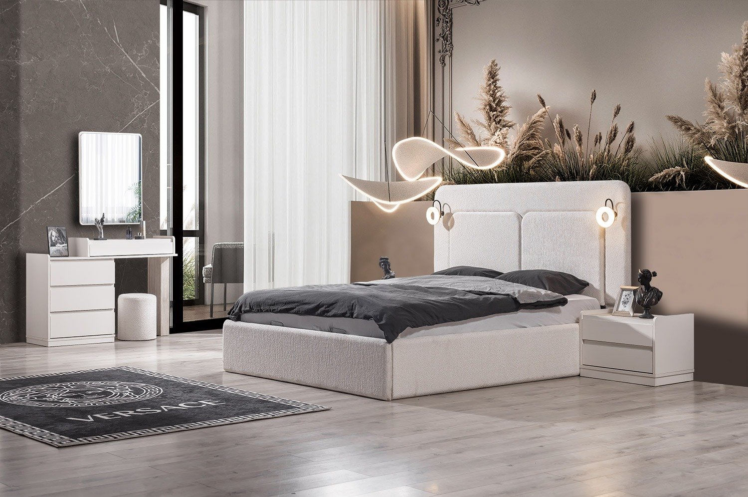 | TAKIM İÇERİĞİ | Bir gardırop, bir şifonyer, bir bazalı karyola, bir başlık, bir bench ve iki komodin den oluşmaktadır |