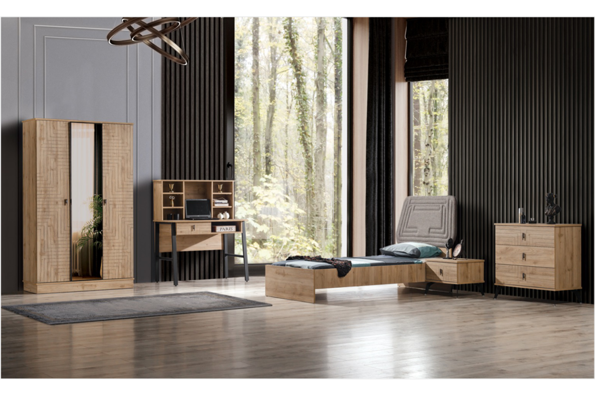 | TAKIM İÇERİĞİ | 1 Adet başlık ve karyola / 1 Adet gardolap/ 1 Adet şifonyer/ 1 Adet komodin/1 Adet çalışma masası |
