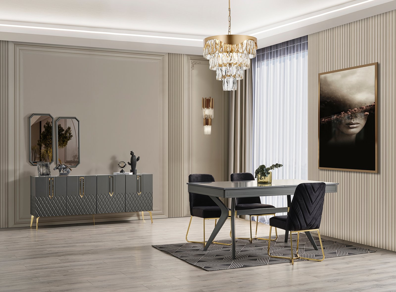 | TAKIM İÇERİĞİ | Bir konsol ve aynası, bir masa ve dört sandalyeden oluşmaktadır |