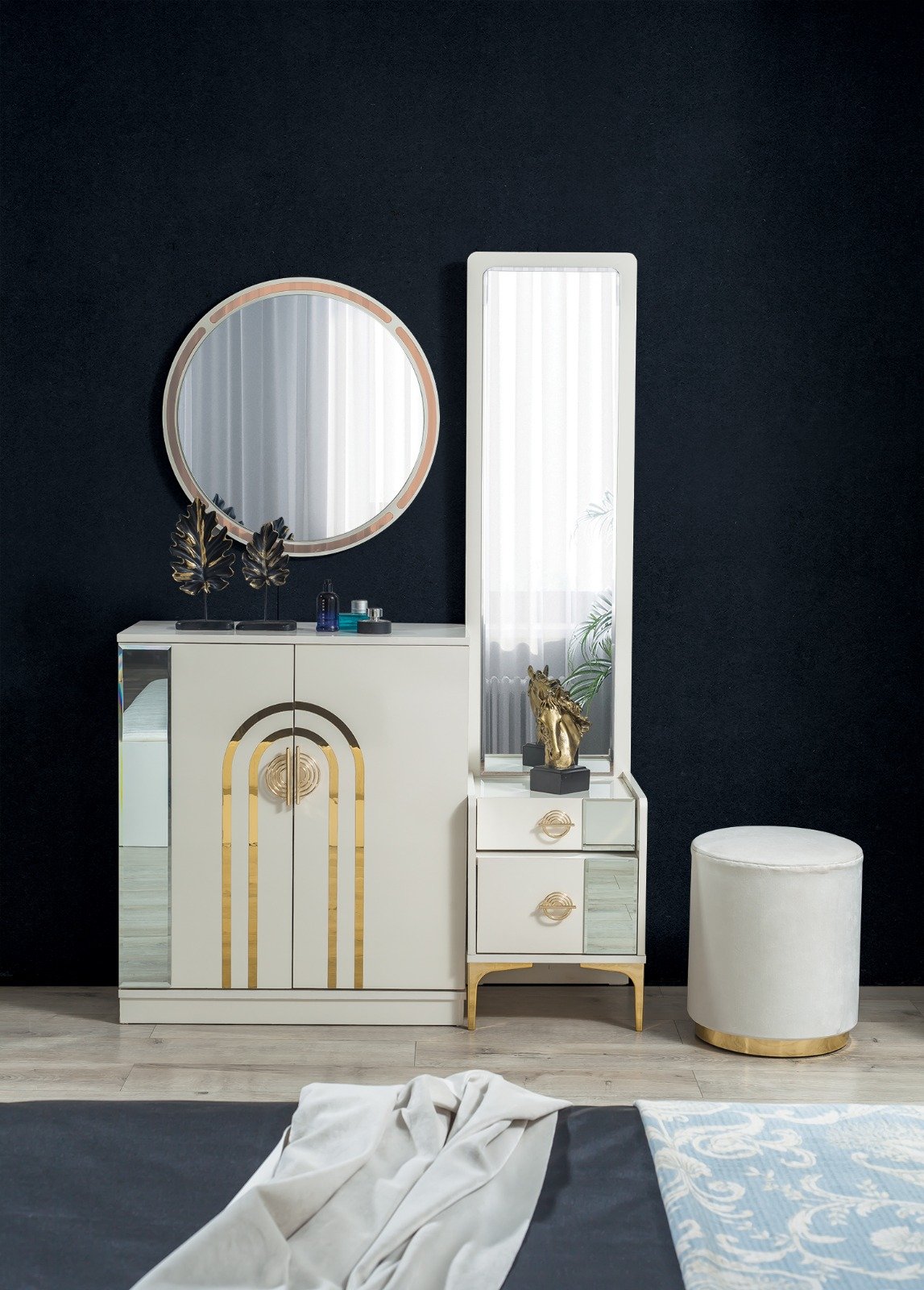| TAKIM İÇERİĞİ | Bir gardırop, bir şifonyer, bir bazalı karyola, bir başlık ve iki komodin den oluşmaktadır |