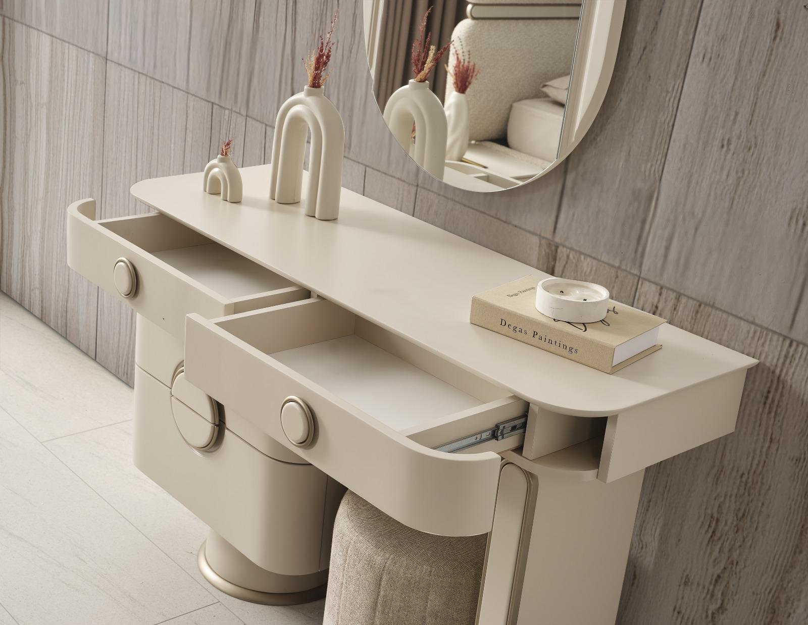 | TAKIM İÇERİĞİ | Bir gardırop, bir şifonyer, bir bazalı karyola, bir başlık,puf ve iki komodin den oluşmaktadır |