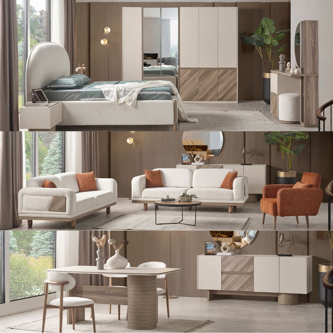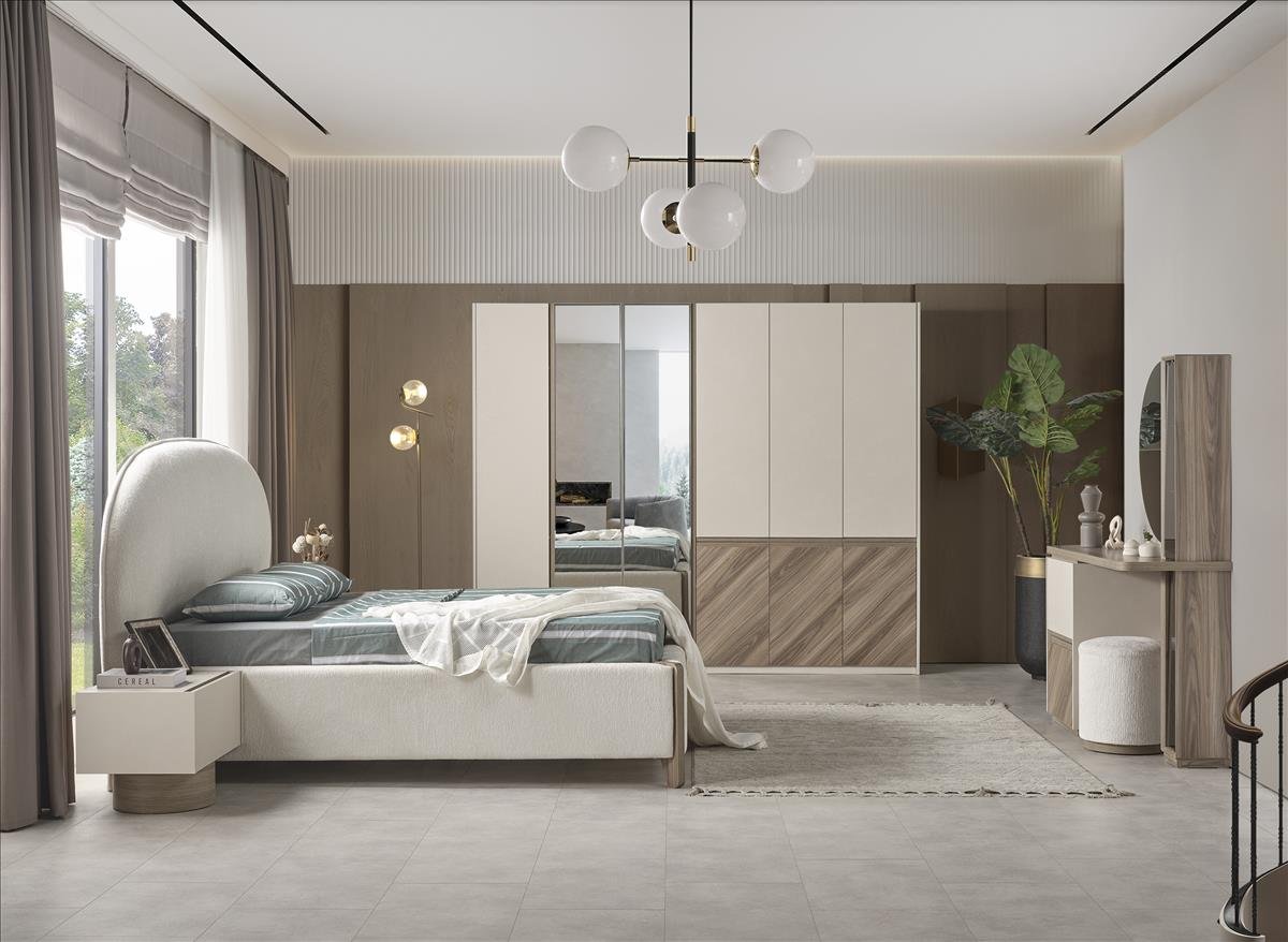 | TAKIM İÇERİĞİ | Bir gardırop, bir şifonyer, bir bazalı karyola, bir başlık ve iki komodin den oluşmaktadır |