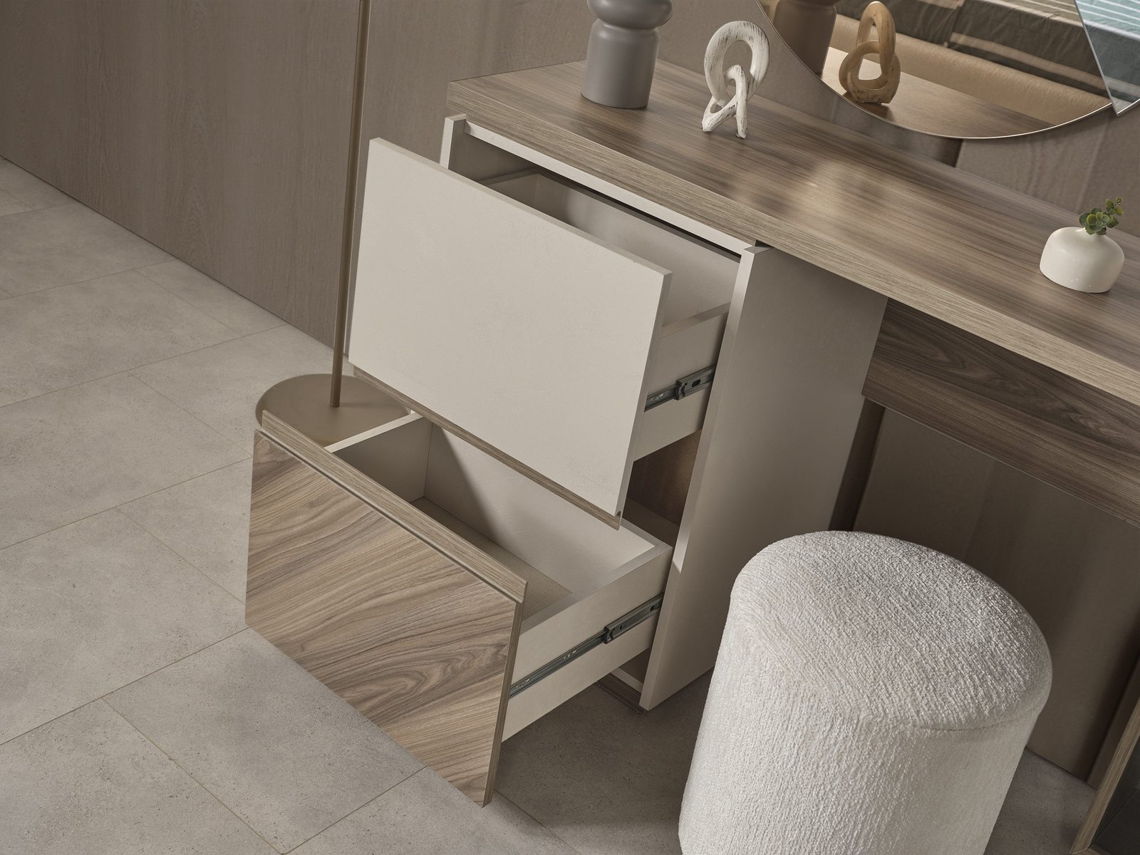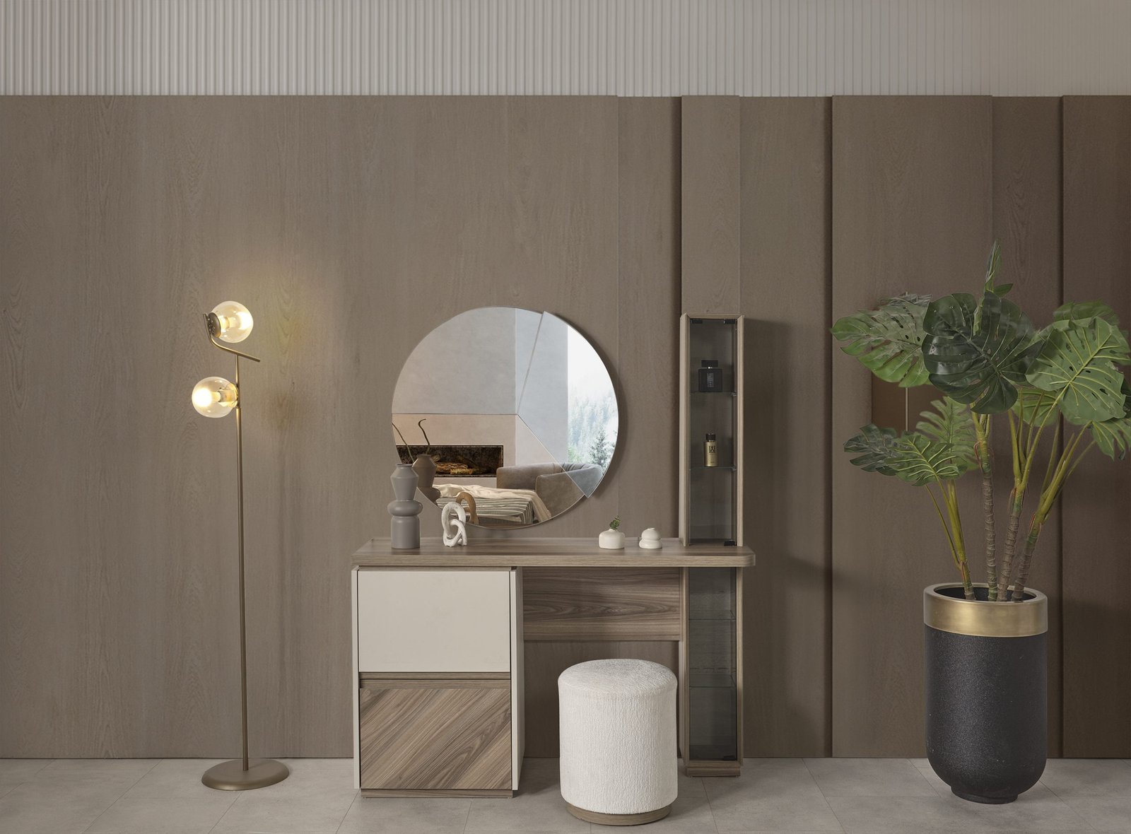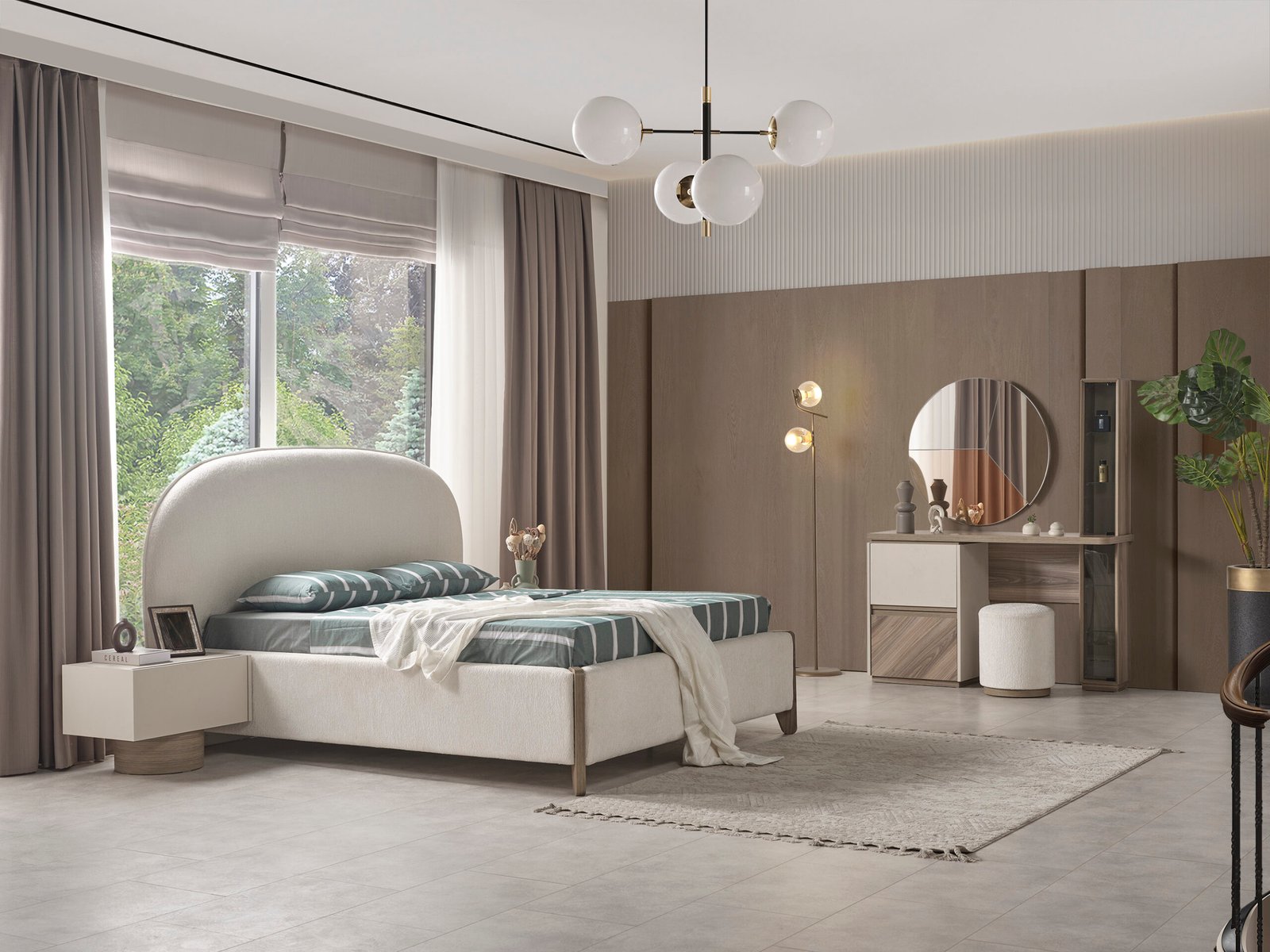 TAKIM İÇERİĞİ Bir gardırop, bir şifonyer v e puf, bir bazalı karyola, bir başlık ve iki komodin den oluşmaktadır
