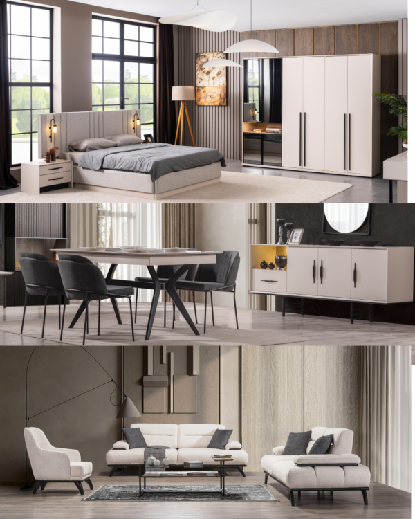TAKIM İÇERİĞİ | Bir gardırop, bir şifonyer, bir bazalı karyola, bir başlık ve iki komodin den oluşmaktadır |